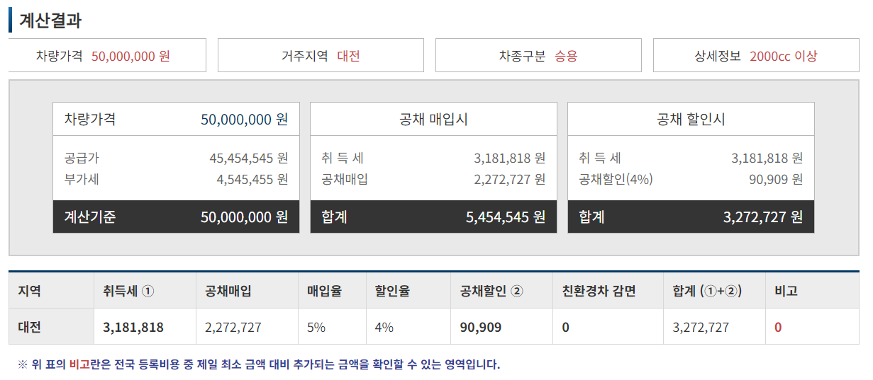 [3] 자동차365 - 중고차 등록비용 계산기 (https://www.car365.go.kr/m3/contents/m3usedcar_cost.do)
