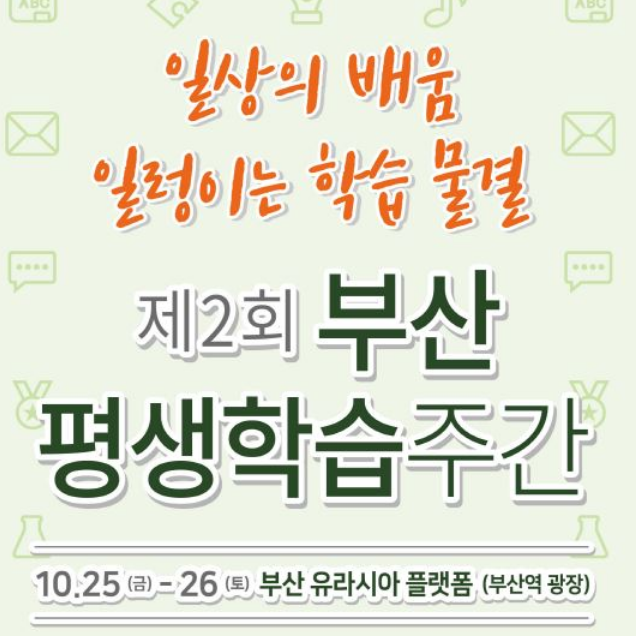 안녕하세요! 오늘은 제 4회 부산유라시아플랫폼 평생학습주간에 대해 총정리해보려고 해요. 이 행사는 평생학습의 중요성을 알리고, 다양한 학습 기회를 제공하기 위해 매년 개최되고 있어요. 특히 올해는 "Do Learn Do Run"이라는 주제로 열리는데요, 그럼 자세한 내용을 살펴볼게요.